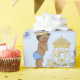 Sweet little prince with carriage in front of his castle. Done in pink & gold. Use for birthdays, baby showers or announcements.
