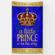 Prince baby shower banner with beautiful red and gold jeweled crown on a beautiful royal blue damask and gold swirl background. This beautiful royal baby shower baby shower banner is easily customized for your event by simply adding the text of your choice. You can move the crown and text as needed, and you can remove the little prince text and add the message of your choice. This is a printed design with no real gold, jewels or raised elements.