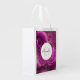 Grocery tote with an elegant abstract design. Dark purple amethyst color with ribbons of gold nestled between layered strata. Rich and beautiful design. Layered over top is a white circle frame with a faux gold foil border, with your personalized text inside.