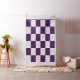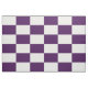 Stylish geometric fabric features a bold checkered pattern of royal purple and white rectangles.