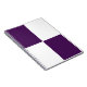 Two royal purple rectangles and two white rectangles form a checkered pattern in this bold geometric design.