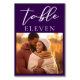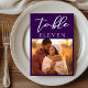 This royal purple wedding photo table number features beautiful white typography on a solid deep violet card for an evening ceremony in the winter. Minimalist script and a bold color makes your reception decor pop and stand out from the crowd.
