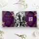 Royal Purple Floral Gold Lace QR Code Wedding Tri-Fold Invitation