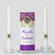 Royal Purple Glamorous Glitter Gold Wedding Unity Candle Set