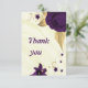 romantic royal purple flowers and gold leaves botanical geometric thank you card.