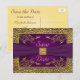 This purple and gold floral save the date post card has a purple FAUX ribbon, gold medallion, and FAUX gold bumpy texture that matches the wedding invitation shown below. If you require any other matching items in this design, please email your request to niteowlstudio@gmail.com.