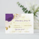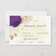 Romantic royal purple & white flowers with gold leaves botanical wedding response rsvp card with meal choice option.
