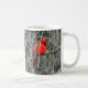 Brilliant red cardinal with his royal red crest stands out on a ceramic mug. Available in several sizes and styles, this bright red bird catches the eye !