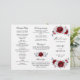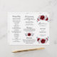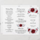 Elegant royal red white silver theme wedding tri fold program featuring elegant bouquet of royal ruby red, crimson, silver, pure white color rose flowers buds and eucalyptus leaves. Please contact me for any help in customization or if you need any other product with this design.