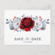 Royal Red White Silver Metallic Save the date Postcard