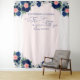 Elegant wedding tapestry for your wedding, bridal shower or wedding anniversary to use as a decorative wall hanging, welcome sign or photo booth backdop, for example. The design has royal blue navy and coral roses, greenery, eucalyptus leaves. The design is hand lettered with love heart flourishes with "the grass is greener with you" and the template is set up for you to add your names and the date.