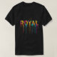 The t-shirt design features the word "royal" in a bold, multi-colored font. The colors are vibrant and eye-catching, creating a regal and luxurious feel. The design is simple yet striking, making it a versatile and stylish choice for any occasion.