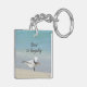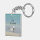 A beachy keychain with a twist. This seabird, a Royal Tern, is preening and posing on a sandy beach while humorously bowing on the back. Or maybe, this seagull is doing some beach yoga. Either way this coastal beach scene is fresh and fun.