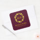 Deep burgundy with soft gold text — a regal rounded square sticker for Islamic weddings and nikah favors, perfect for elegant finishes.