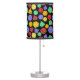 Brighten up your space and show off your love for playing games at the same time with this lamp and it's patterned lampshade. Illustrations of RPG or fantasy game style dice in orange, yellow, red, purple and green are set against a black background.