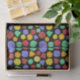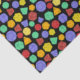 This colorful patterned tissue paper is perfect for wrapping up gifts for fans of role-playing and fantasy board games. It features illustrations of different multi-sided dice in green, purple, orange, red and yellow set against a black background.
