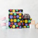 This colorful patterned wrapping paper is perfect for wrapping up gifts for fans of role-playing and fantasy board games. It features illustrations of different multi-sided dice in green, purple, orange, red and yellow set against a black background.