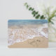 Hearts in beach sand with starfish and ocean surf for RSVP wedding