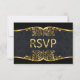 Black Gold Damask Wedding Invitation RSVP.