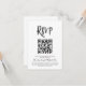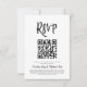 A black and white style wedding RSVP that allows you to reserve your spot at the party by using a QR-code. Use google to find a free QR code generator. You can then generate a code for your Facebook page, website, or personalized directory for fulfilling your reserved spots for your event.