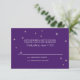 Matching RSVP card perfect for a country style wedding for your Mason Jar theme! A Royal Purple (02:6:9) background against the with whimsy fireflies. This will match my Mason Jar wedding invitations. If you have any questions on this design or want a color change please email me paula@labellarue.com Also check for the INVITATION, RECEPTION and GUEST SEATING Cards to match!