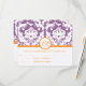 Royal Black Damask Wedding RSVP Response Cards Shown with the beautiful paper color showing which is felt - you choose background color from almost 200 colors and papers which alter the colors so click on customize and create your one of a kind invitation! shown with coral and lilac fonts - you choose colors in fonts as well - if you would like a glossy finish (glossy on front side only) order the basic, linen or metallic papers - for a matte finish order recycled, felt or speckled.
