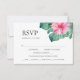 This reply enclosure card features a top boarder of palm leaves with a hibiscus flower in vibrant shades of pink and green. Space is provided for guests to add their response information and simple meal choice. The card reverses to complimentary pink color. A simple yet elegant choice for tropical destination weddings. To see more from this pink hibiscus flower wedding theme visit https://www.zazzle.com/collections/pink_hibiscus_flower-119064582807479077