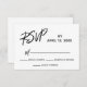 Give your guests a way to respond to your wedding celebration invitation with the help of these simple black on white RSVP cards. In the design I've used a casual, modern, handwritten font to create a graphic typography overlay reading "RSVP," and "M" as well as "Love" on the reverse side. Fill in the template blanks with your details to personalize the design. All layers were left unlocked so you can also click to further customize and re-position text or even change sizes or the editable fonts. The background color was left white but this, too, is editable; change it to one of your wedding colors if you prefer. There is an alternate version in a similar design that makes room for menu choices if you prefer that option. Please do not hesitate to reach out for assistance with customization.