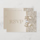 Elegant custom formal champagne RSVP wedding, neutral baby shower, birthday party or corporate events flat cards with a beautiful printed champagne color sequins pattern, a cute shiny printed bow and ribbon and pretty printed diamond bling jewel. These classy, glamorous, fashionable invites are decorated both sides. Beautiful, chic, trendy, modern, contemporary invitations. Please note: All invites on Zazzle have flat printed images. Text, font and color of font can all be customized. If you need assistance customizing your product please contact me through my store. I will be happy to help. I have matching products in my store and many different color options.