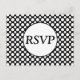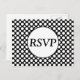 A custom RSVP engagement or party postcard with a background pattern of white polka-dots on black with custom italic and block letters. Click Customize it to change fonts, sizing, background colors and more, even save your design for later.