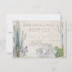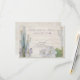 Matching RSVP response cards with guest reply options you can edit. This invitation set begins with hand painted desert cactus and large succulent images by Audrey Jeanne Roberts. They are individual cacti and succulents painted in soft desert pastels in shades of lavender and purple with soft mint and sage green. They were painted from life in the cactus garden at her home in Southern California. A sun faded, distressed, worn shiplap vintage wooden fence background sets off the simple and modern style of the typography text layout. Hand lettered calligraphy font text reads, "kindly reply on or before" (we can customize these for you if you message us). Copyright all rights reserved.