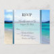 Easy to customize RSVP postcard for your beach theme wedding or party. Beautiful and tranquil relaxing beach with sandy shore, ocean waves, blue sky and white puffy clouds.