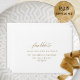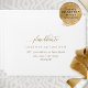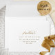 Elegant white self- addressed RSVP envelope. Ability to add your name(s) and address or to erase from text boxes to add later at home. Graceful modern hand written calligraphy details. Inside as well in white color, which can be changed to any other color you like by selecting customize further and adding a different color into "rectangular" shape covering all inside background. Note: typography is not in real foil, but rather print in a golden hue. Part of our "Elegant Calligraphy Minimalist Wedding" collection.