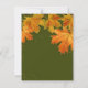 Matching RSVP Response card to return to the bride for an accurate guest count. Includes free white envelopes. Deep, rich forest green background causes the design to really pop. This brilliantly colored fall leaf wedding design was created from artwork that was hand painted by Audrey Jeanne Roberts and then graphically designed into this simple, modern, clean lined wedding invitation set with matching products for showers, receptions and formal events. 5 autumn leaves that are turning colors from bright red to orange, gold and avocado green tumble from the trees and are layered over an art deco style simple gold leaf border, worn aged distressed vintage style parchment paper that is tea stained and confetti like faux gold glitter, sparkle splatters for a finishing touch. On the reverse side are the leaves and twinkling, glittering polka dots.