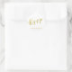 NewParkLane - Elegant wedding or engagement stickers, with 'RSVP' quote in elegant faux gold brush script typography. Easy to customize in Zazzle with your own names, date or other text for a personalized design. All text style, colors, sizes can be modified to fit your needs. You can also change the background color to any color you prefer.