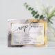 RSVP | Hand painted marbled splash in shades of gold, pale pink and charcoal black - and a gold frame with a sheer white center highlighting the invitation text. Handwritten script calligraphy text on the diagonal at the top allows a warm personal appeal - easy to personalize template.