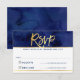 RSVP REPLY modern blue watercolor gold writing Card