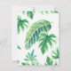 Matching RSVP response card. Loose. Modern. Contemporary watercolor style with hand painted pink flamingo birds and an assortment of tropical leaves including banana leaves. Changeable background color. Art copyright, Audrey Jeanne Roberts, all rights reserved.