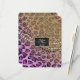 Matching RSVP mail back response card for formal receptions requiring a catering meal count. Hand watercolor Leopard print in lavender and purple color with black is layered with halftone glitter dot patterns and diamond jewel and gold bead strings for a fun, glitzy, sparkling invitation set. A bracket shaped jet black frame with gold and diamonds holds your monogram and personalized name for a customized presentation. The pattern has a twinkle light look for shimmer without shedding glitter! NOTE: This is a flat printed pattern, there are no real jewels, gold or glitter just a graphic representation.