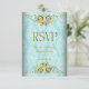 RSVP Response Wedding Teal Blue Gold Damask