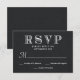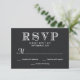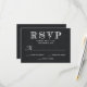 Simple but elegant Wedding RSVP Response cards. Vintage style black dyed burlap sackcloth background with white retro woodcut typography. Perfect for modern rustic country weddings with a sophisticated touch of class. Note: This is a paper card with a PRINTED image of textured canvas burlap for decorative effect. There are no real or raised textures.