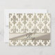 NOTE: USE THESE FOR 5x7 RECTANGLE INVITATIONS, they will not fit in the square sized envelopes. These are flat printed invitations, there are no raised or dimensional layers or metal inks used. COLOR PALETTE: cream, off white, and golden, gold metallic look. DESIGN COLLECTION: Matching RSVP Response Return Card with Menu Choices. If you don't need those choices, simply delete the text in the template box. This 50th Wedding Anniversary Invitation Set was hand created and graphically designed by Audrey Jeanne Roberts with a Fleur De Lis Damask background repeat pattern in a warm silver tone with a raised, dimensional look to it. The fleur dy lis design has a larger and smaller version mixed together and they are made with a leaf pattern and dots. There is a silver band with polka dot border and the title in a hand calligraphy font style lettering. On the reverse side is your invite text which is easily customized using the personalized template fields. There are other color combinations available and we can custom match to your formal event colors if desired.
