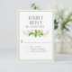 Hand painted watercolor seeded eucalyptus leaves and green foliage are paired with a clean simple typography text design and a hexagonal back side pattern. Clean. Modern. Natural. This RSVP Response card coordinates with the wedding invitation suite and is for your guests to fill out and return. Easily customize your information in our simple template. Modern, simple styling with a serif, all cap font design.