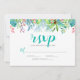 RSVP elegant modern script typography with colorful tropical flowers border.