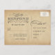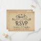 Simple but elegant Wedding RSVP Response economical post cards. Vintage style antique parchment with tandem bicycle built for 2 and Victorian floral motif and retro typography. Perfect for modern, rustic country weddings with a romantic sophisticated touch of class. Note: This is a paper card with a PRINTED image of parchment for decorative effect. Matching invitations and coordinating stationery accessories set available.