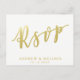 NewParkLane - Elegant Postcard, with 'RSVP' in elegant faux gold script typography, against a white background. Easy to customize in Zazzle with your own names, date or other text for a personalized design. All text style, colors, sizes can be modified to fit your needs. You can also change the background color to any color you prefer.