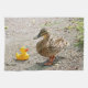 A funny photo of a yellow rubber duck looking at a mother mallard duck. "Mom, is that you?" This cute bird picture would be fun gift for any bird lovers or mothers.
