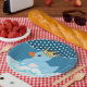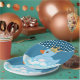 Here's a cute birthday party paper plate that features our blue rubber duck (and he's wearing a crown!) sitting in bubbles. White polka dots add a festive look. Available in different shapes and sizes.