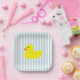 Enjoy our rubber duck blue stripe paper plates for baby showers or birthday parties.