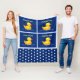 Inspirational and fun fleece blanket with a yellow rubber duck floating along on blue waves and reminding you to "FLOAT ON" no matter your troubles.